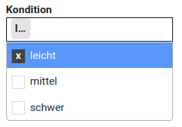 Besipiel: Kondition leicht, mittel und/oder stark, wahlweise kombiniert mit einem Textfilter wie oben.